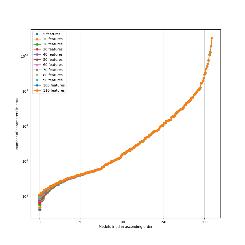 Reproduced the original 155-model classical grid and observed its limits at higher feature counts.